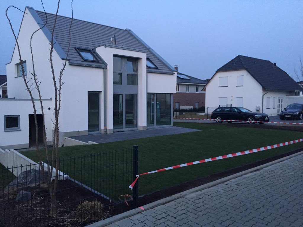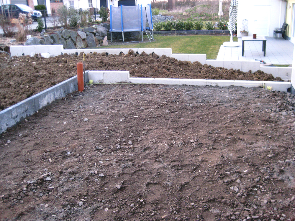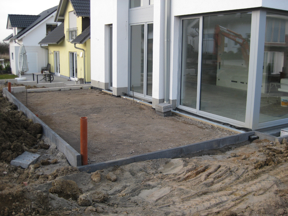 Außenanlagen mit ersten Kantsteinen – Innen Malerarbeiten 1. März 2015Außenanlagen, Fenster, MalerSt.