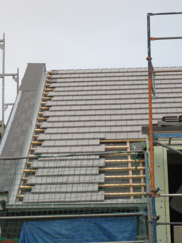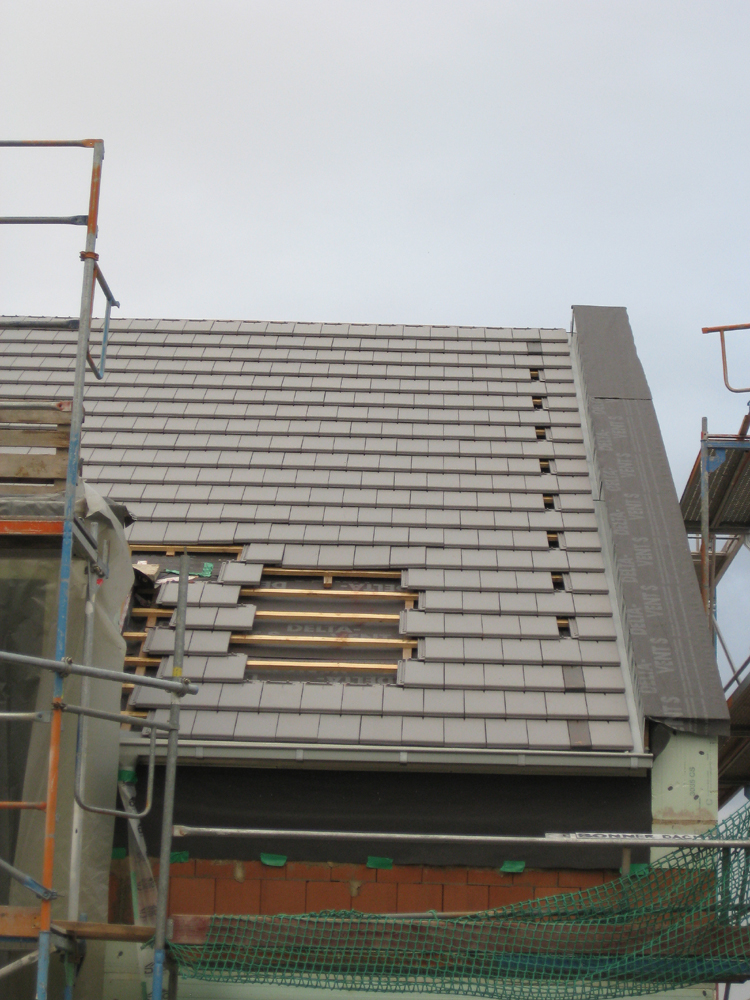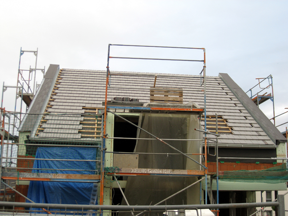Die ersten Stylist-Dachpfannen liegen – Wir sind bald dicht! 23. Oktober 2014Dachdecker, Heizung & SanitärSt.