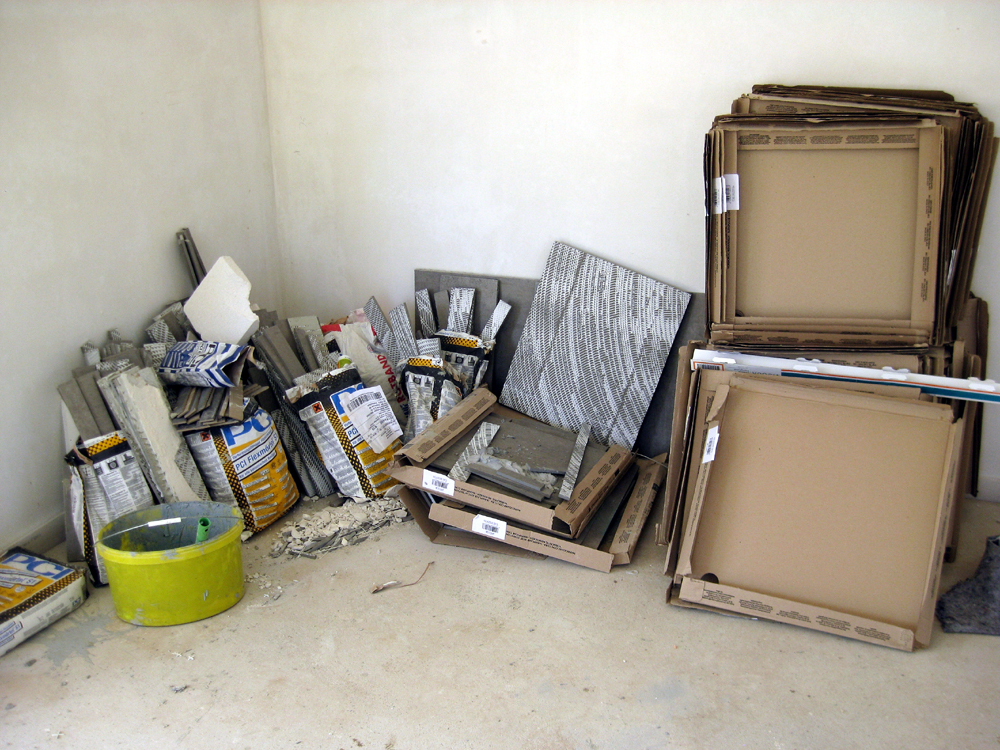 Erste Wand gefliest, Dachdecker dichtet Türsockel, Fernbedienungen DFF gesichtet 4. Februar 2015Dachdecker, FliesenSt.