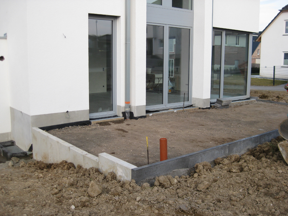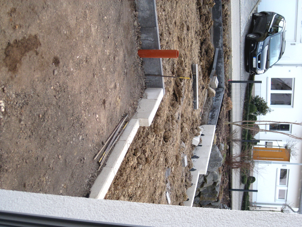 Außenanlagen mit ersten Kantsteinen – Innen Malerarbeiten 1. März 2015Außenanlagen, Fenster, MalerSt.
