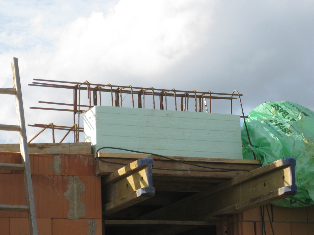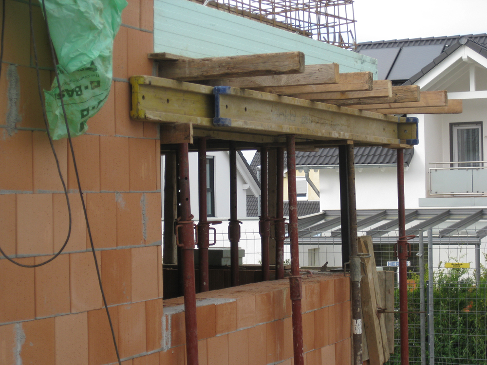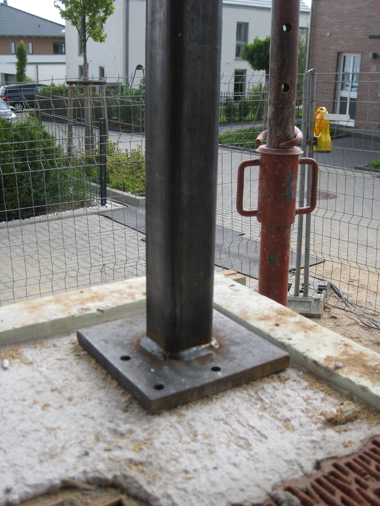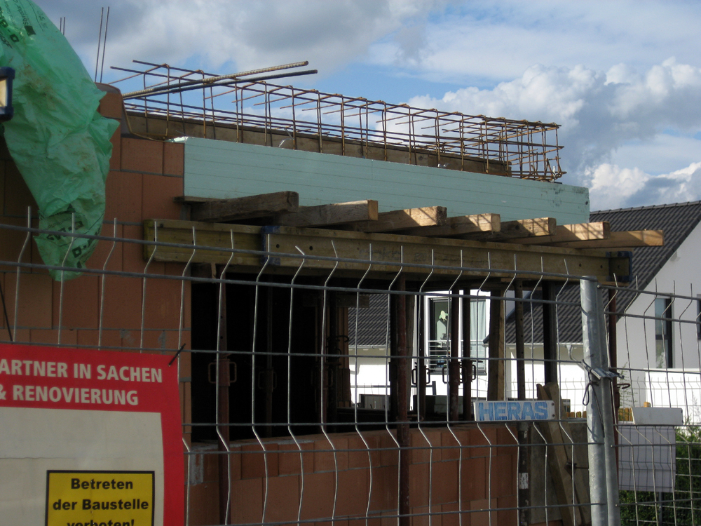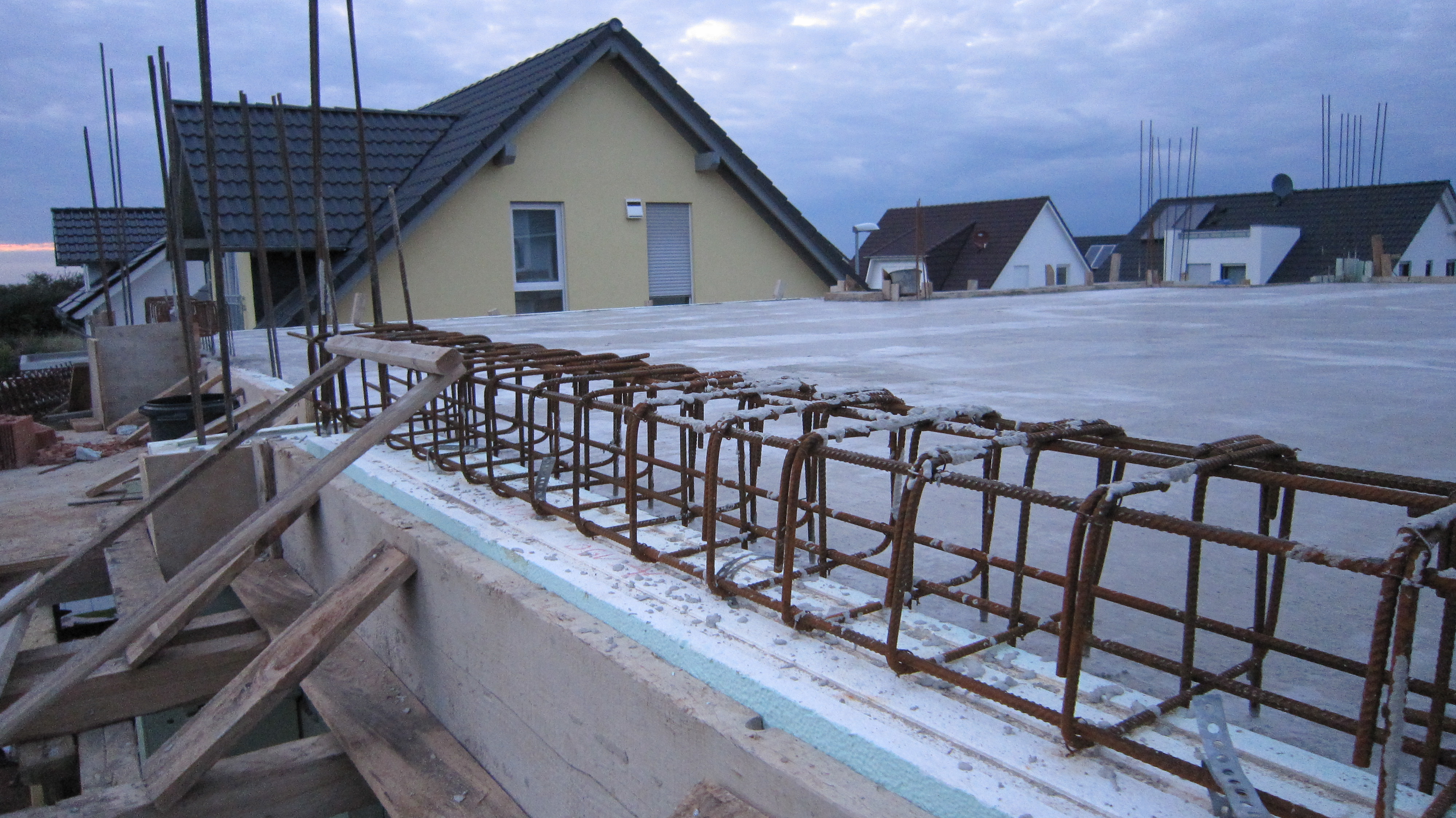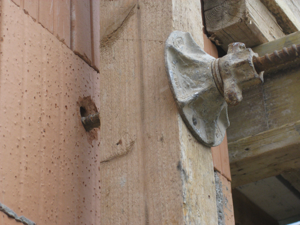 Diesmal tragen die Gewindestangen für die Verschalung auf der Fläche ab