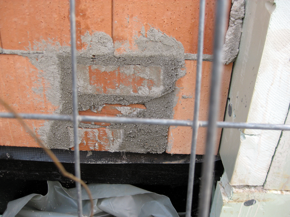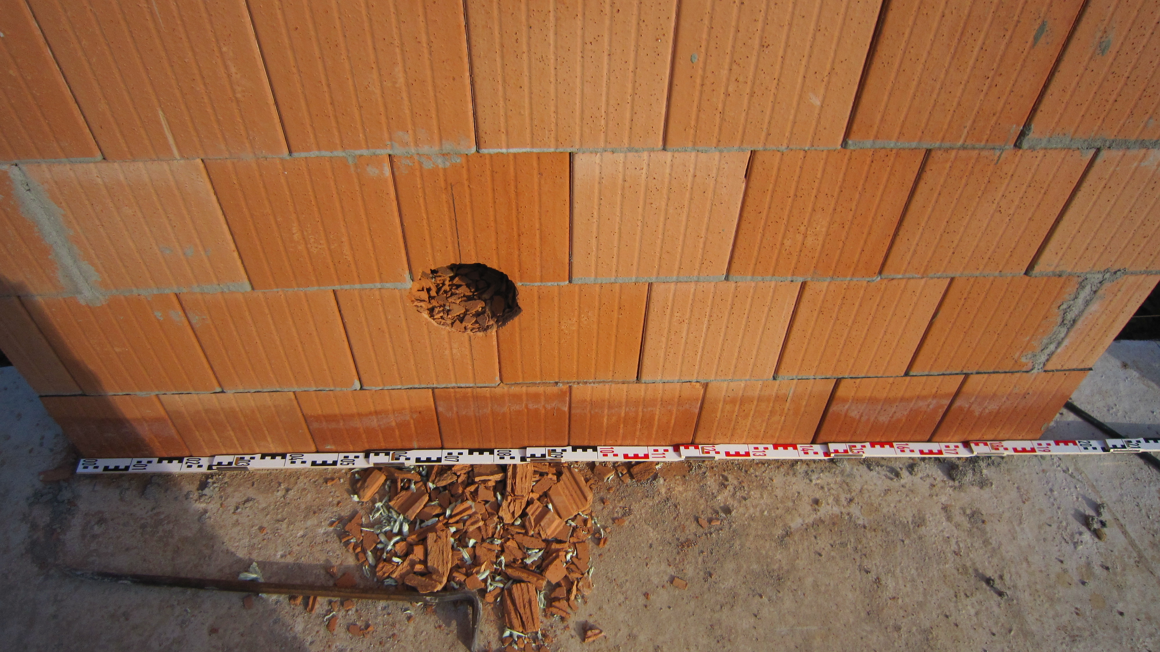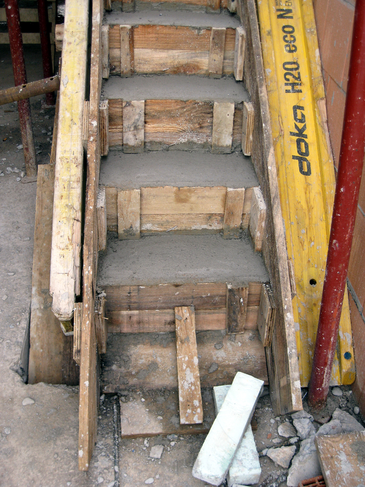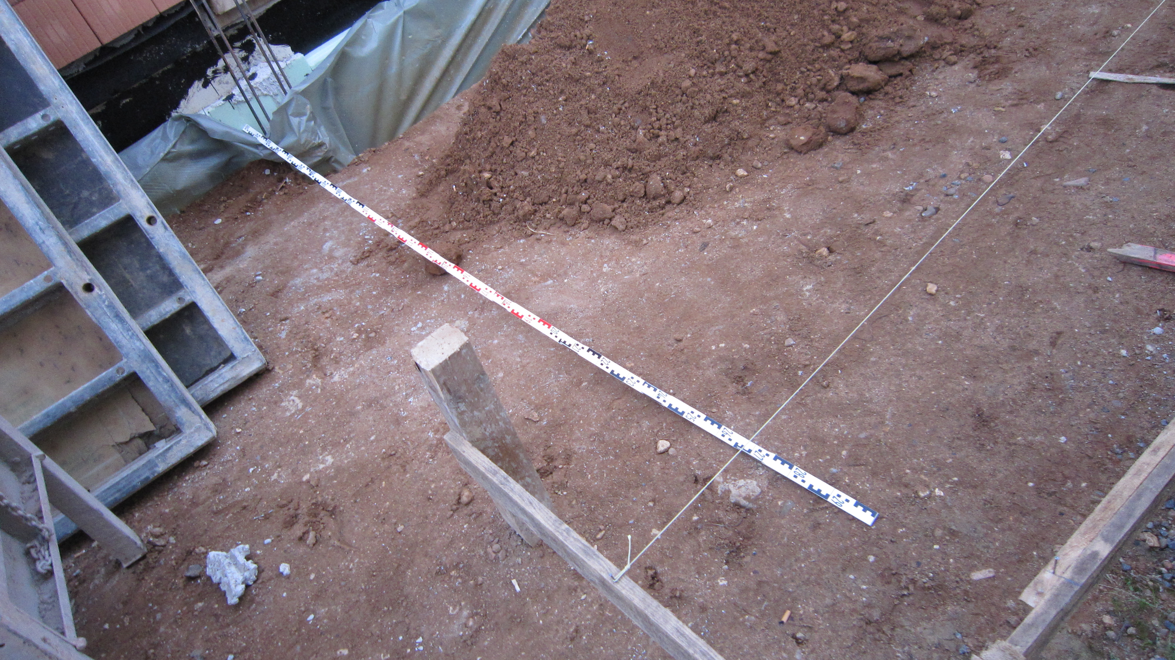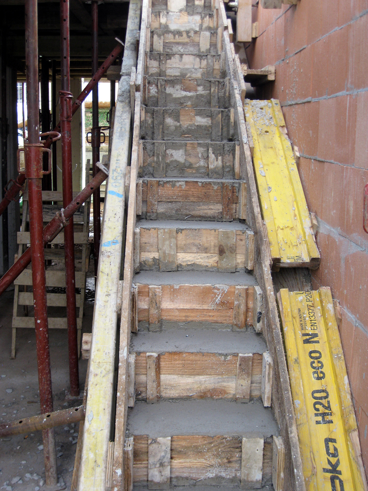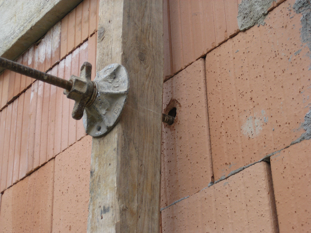 Diesmal tragen die Gewindestangen für die Verschalung auf der Fläche ab