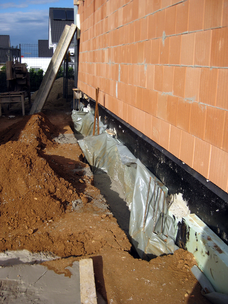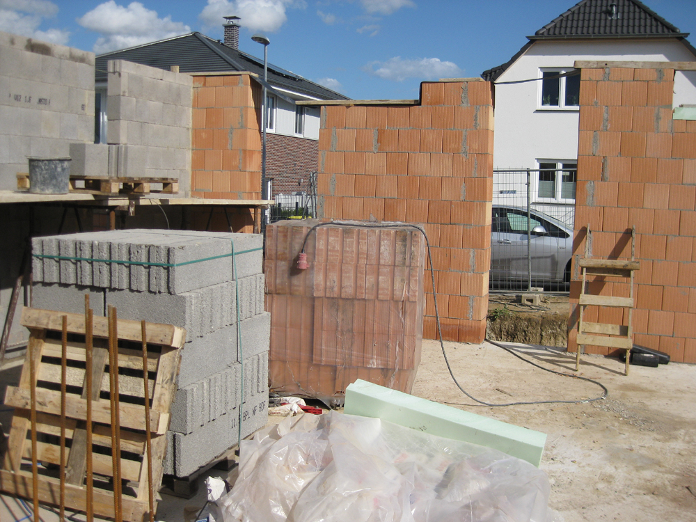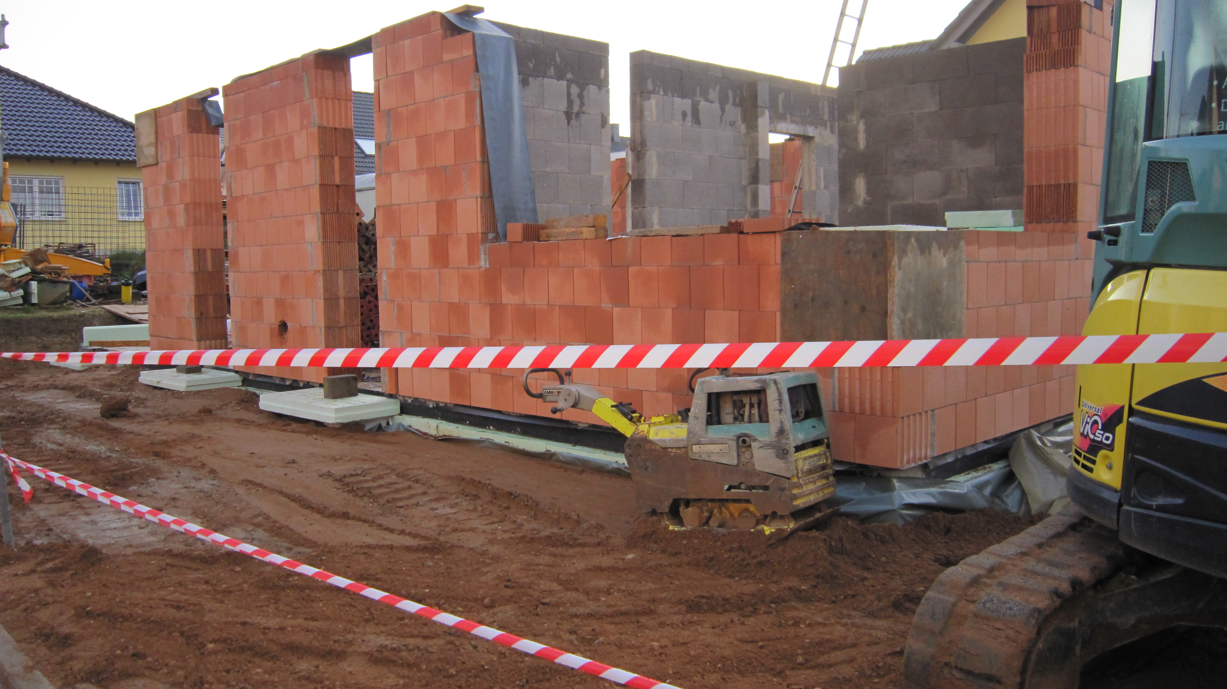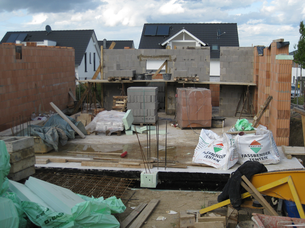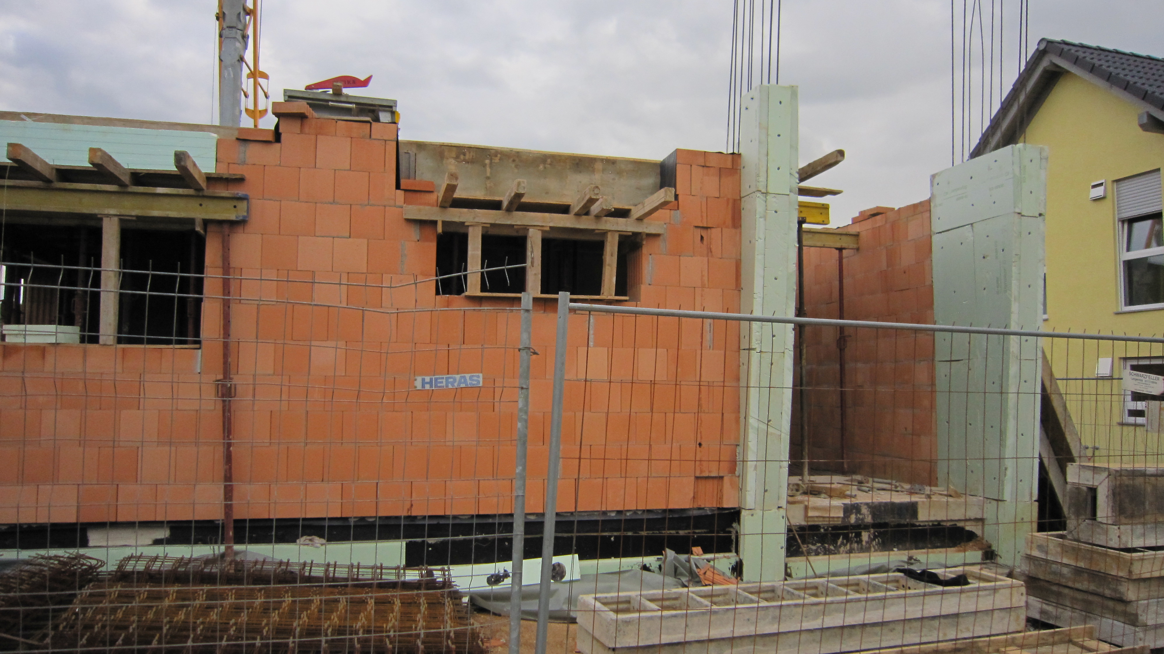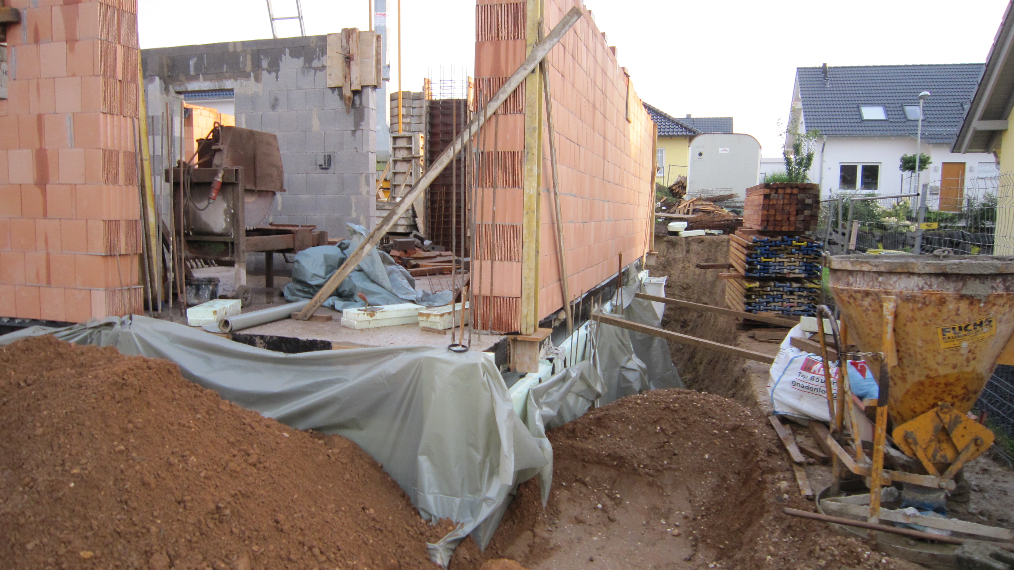 Teilverfüllung der Baugrube und wachsende tragende Wände