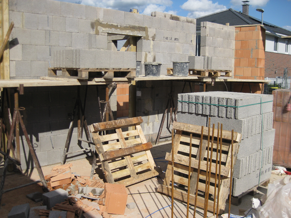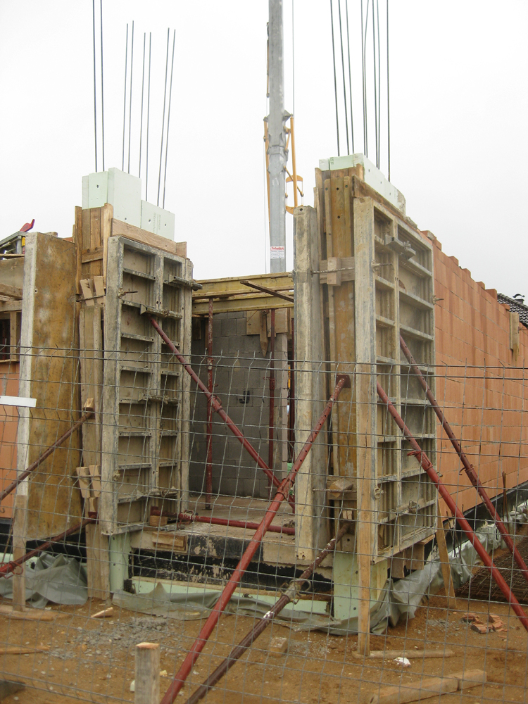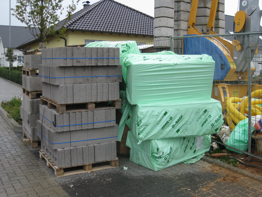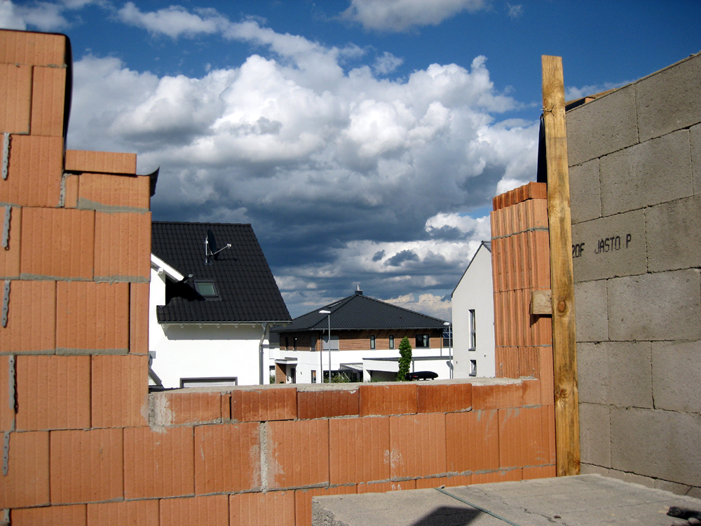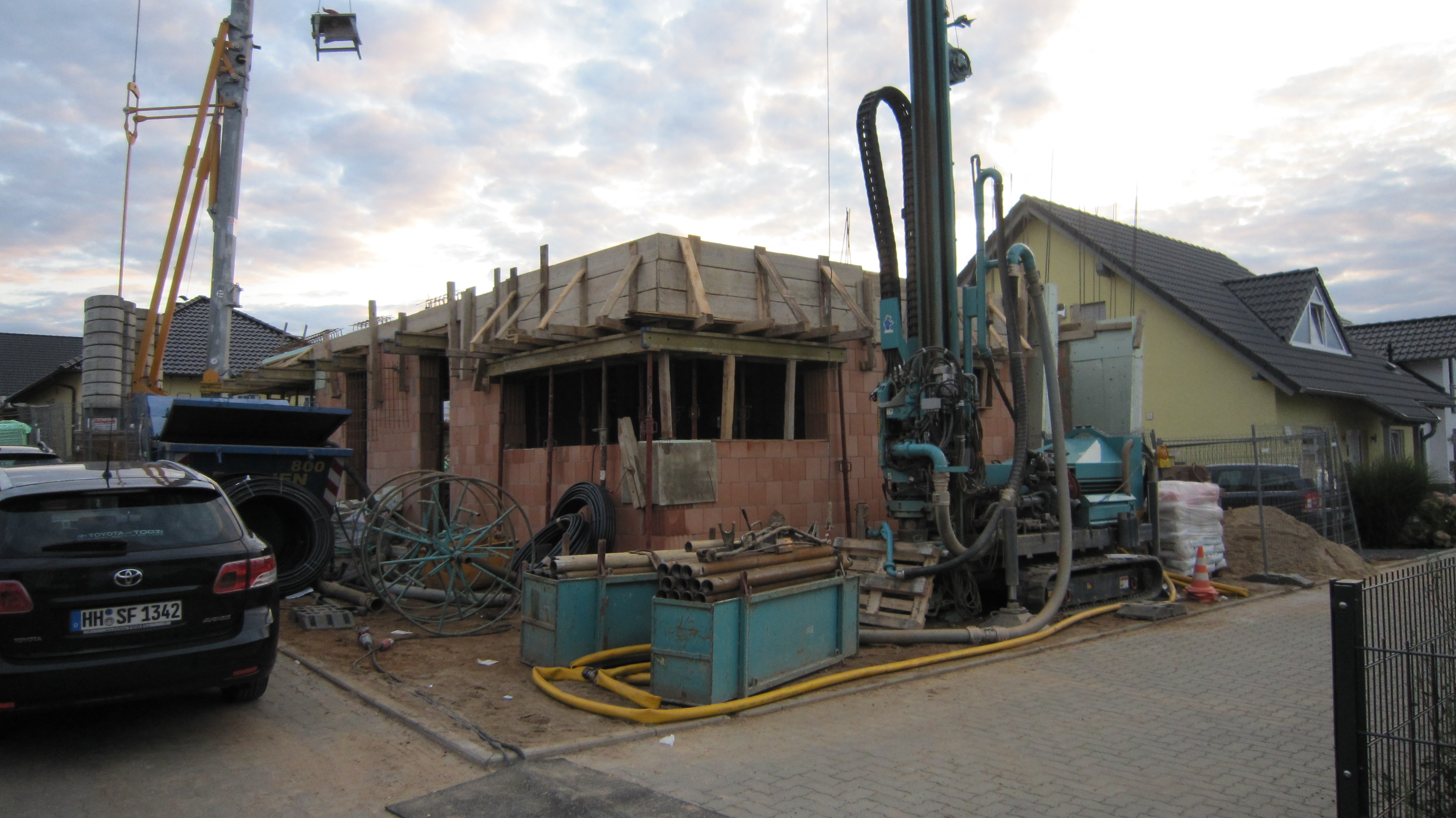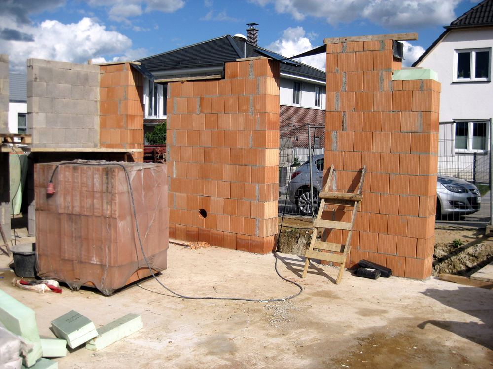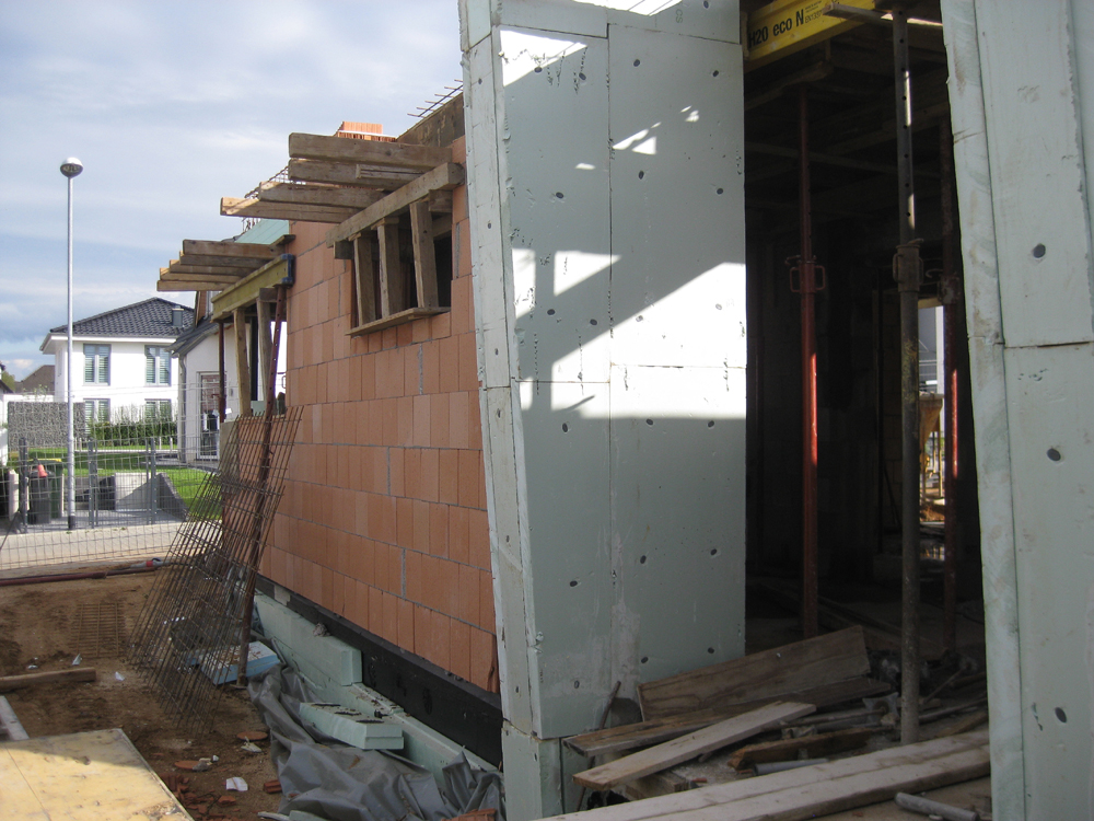 Teilverfüllung der Baugrube und wachsende tragende Wände