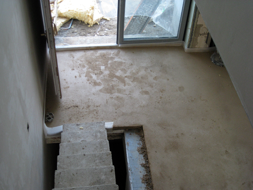Material für unseren Trockenbau liegt im Nassbau und wartet
