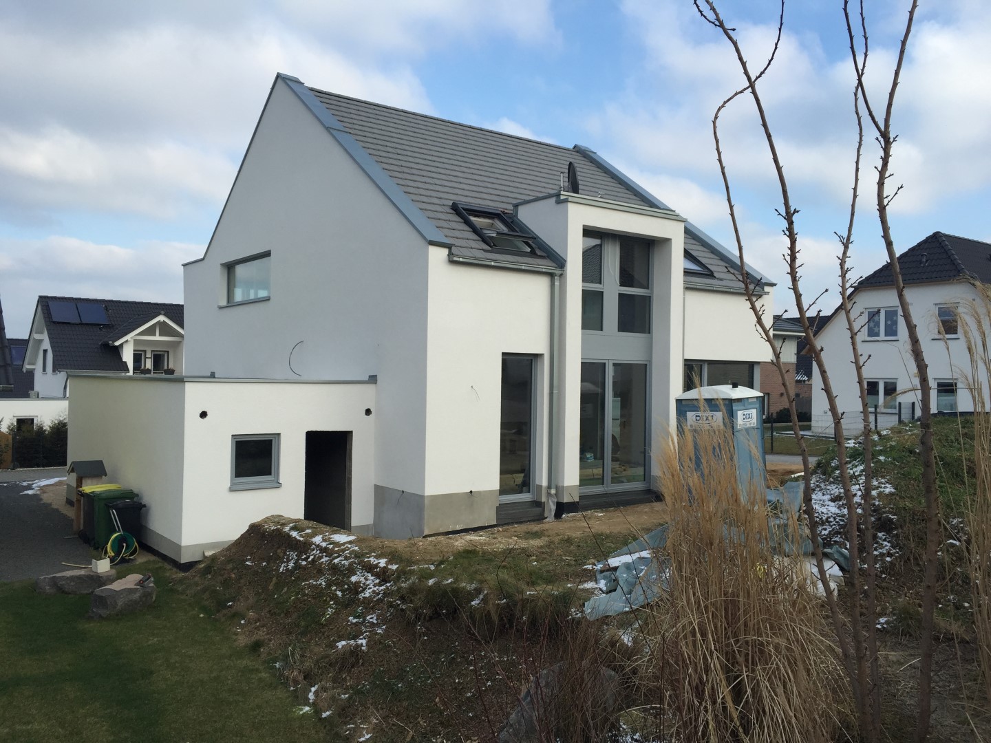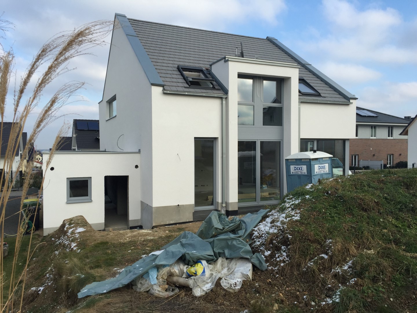 Erste Wand gefliest, Dachdecker dichtet Türsockel, Fernbedienungen DFF gesichtet
